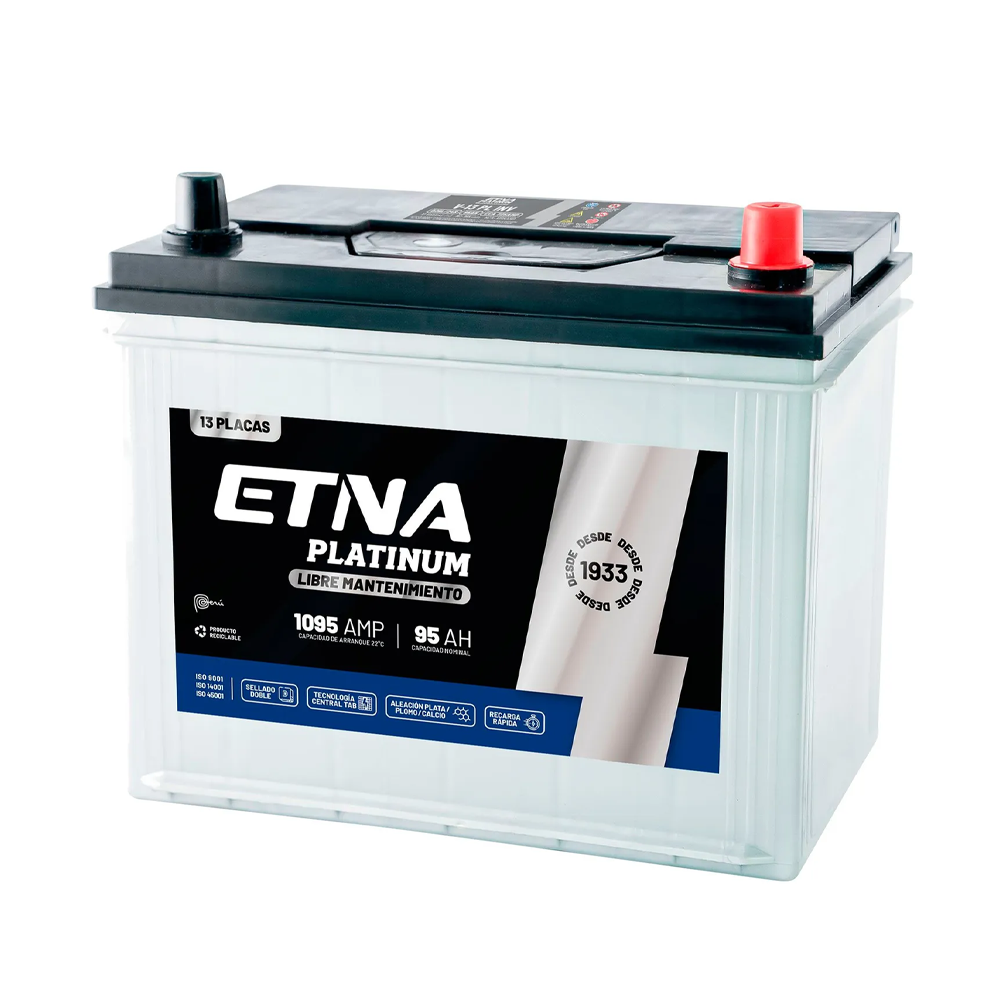 Las baterías ETNA Platinum son acumuladores de alta gama fabricados con una aleación especial de plomo-calcio-plata. Esta composición química superior permite obtener un rendimiento excepcional y prolongar significativamente el ciclo de vida del producto en comparación con baterías convencionales.