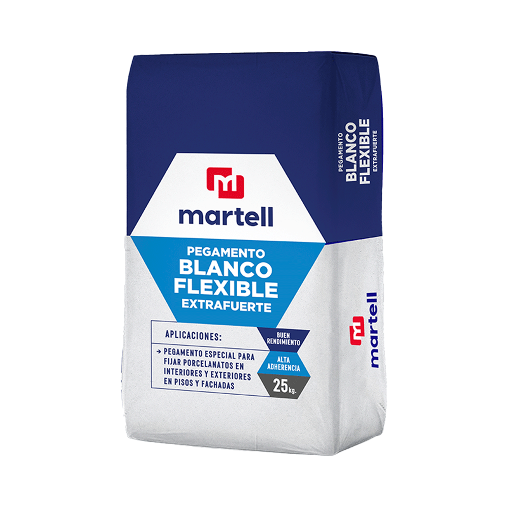 El Pegamento Blanco Flexible de Martell es un adhesivo de alta gama diseñado para la fijación profesional de porcelanatos. Su fórmula equilibrada de cemento, agentes reológicos y aditivos especializados garantiza una adherencia superior en pisos y fachadas tanto interiores como exteriores.